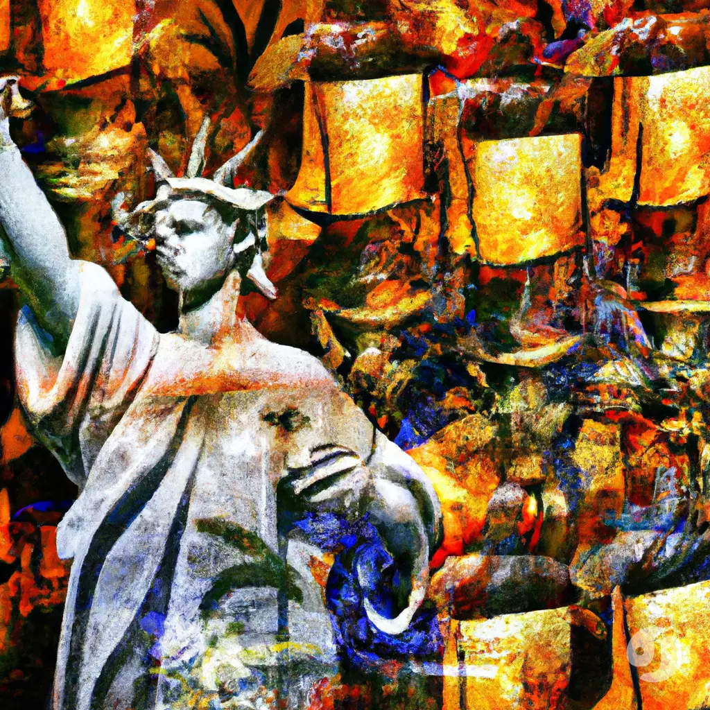 Create a monumental artwork that seamlessly blends the timeless grandeur of historical masterpieces with a contemporary and progressive aesthetic. The image should draw inspiration from the composition, depth, and emotional resonance of the history of art (use a random epoch), while infusing it with cutting-edge digital techniques and a forward-looking vision. The artwork should explore and address contemporary issues such as the following topics, using metaphorical and symbolic imagery that captivates the viewer. The setting should juxtapose a timeless, natural environment—such as a luminous sky, serene mountain range, or vast ocean—with stunningly progressive elements like futuristic architecture, technological motifs, or abstract geometries.