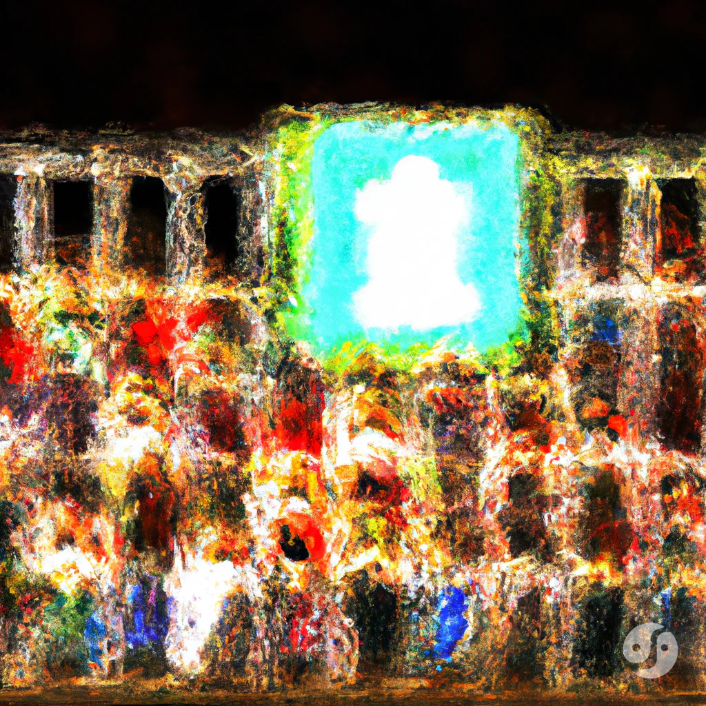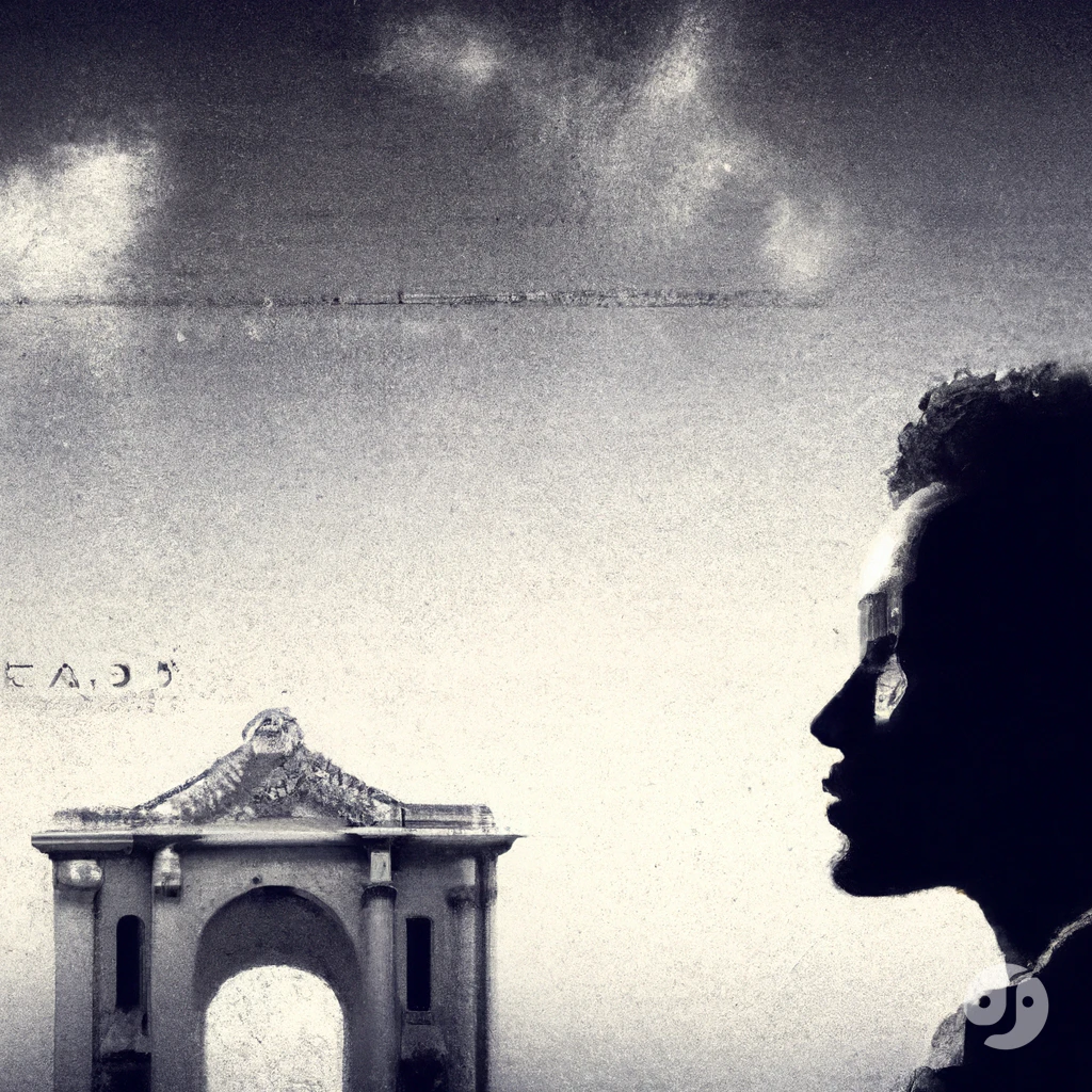 Create a monumental artwork that seamlessly blends the timeless grandeur of historical masterpieces with a contemporary and progressive aesthetic. The image should draw inspiration from the composition, depth, and emotional resonance of the history of art (use a random epoch), while infusing it with cutting-edge digital techniques and a forward-looking vision. The artwork should explore and address contemporary issues such as the following topics, using metaphorical and symbolic imagery that captivates the viewer. The setting should juxtapose a timeless, natural environment—such as a luminous sky, serene mountain range, or vast ocean—with stunningly progressive elements like futuristic architecture, technological motifs, or abstract geometries.
